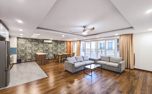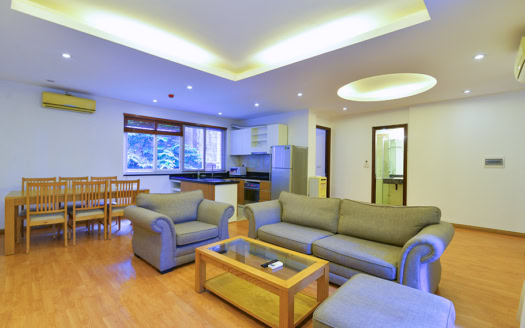 The apartment is 110m sq, 3 bedrooms, 2 bathrooms, living room, kitchen and dining area. The apartment is nice, modern, located in Tay Ho street where is heard ...