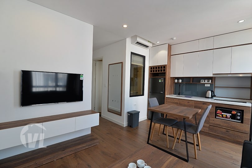 Beautiful 50m², 1 bedroom serviced apartment located in Tay Ho street. The apartment is decent spacious, has good natural light coming in, and in the center of the Tay Ho area.