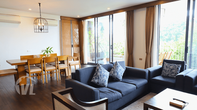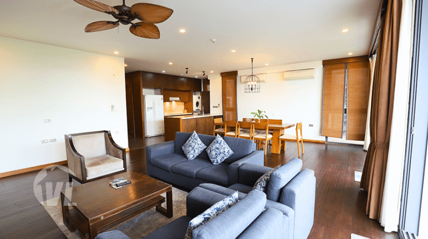 Are you looking for a nice 3 bedroom apartment to rent in Tay Ho quiet area? This is the perfect apartment for you. The size is 200 sqm including a living room combining kitchen & dining area. The apartment has 3 bedrooms and 3 bathrooms. The apartment is located on Xom Chua (Quang Khanh) quiet area.