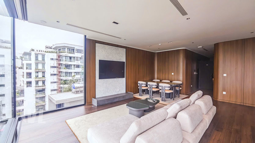 Fully serviced apartment for rent in Tây Hồ featuring 3 bedrooms and 2 bathrooms. The apartment comes with brand-new, modern furnishings and offers a beautiful view. Conveniently located near shopping malls, gyms, and restaurants.