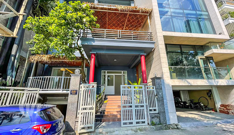 This brand-new house on the West Lake for rent is the newest in Tay Ho. On a land size of 220 sq m, its construction reaches 170 sq m per floor, for a total living area of 600 sq m. It comes with 6 bedrooms and 5 bathrooms.