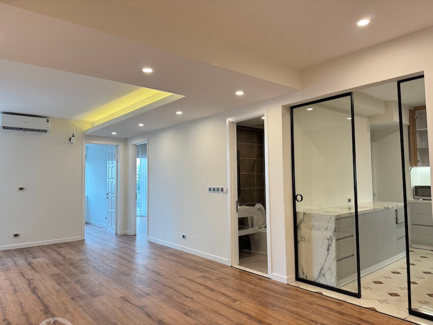 Located on the 6th floor of E1 Tower in the Ciputra compound, this spacious 123 sqm apartment features 3 bedrooms and 2 bathrooms with a modern design and a bright, well-flowing layout. The apartment includes a storeroom and a balcony with a nice open view. Double-glazed windows, elegant curtains, and tasteful décor create a comfortable and airy living space. The apartment is partly furnished, with the option to provide additional furniture upon request. Residents enjoy excellent on-site amenities including a large outdoor swimming pool, tennis court, basketball court, children’s playground, and grocery shops located within the building. Conveniently located just 15 minutes by bicycle to Hanoi Academy, UNIS, and SIS.