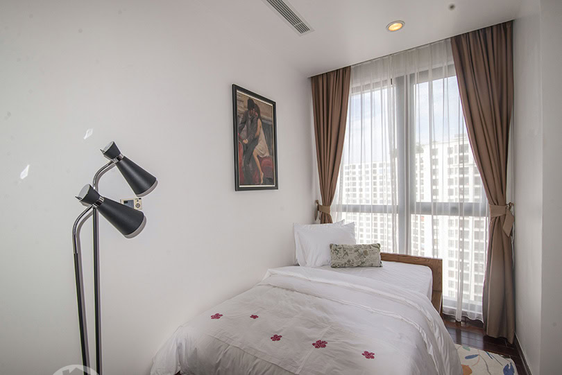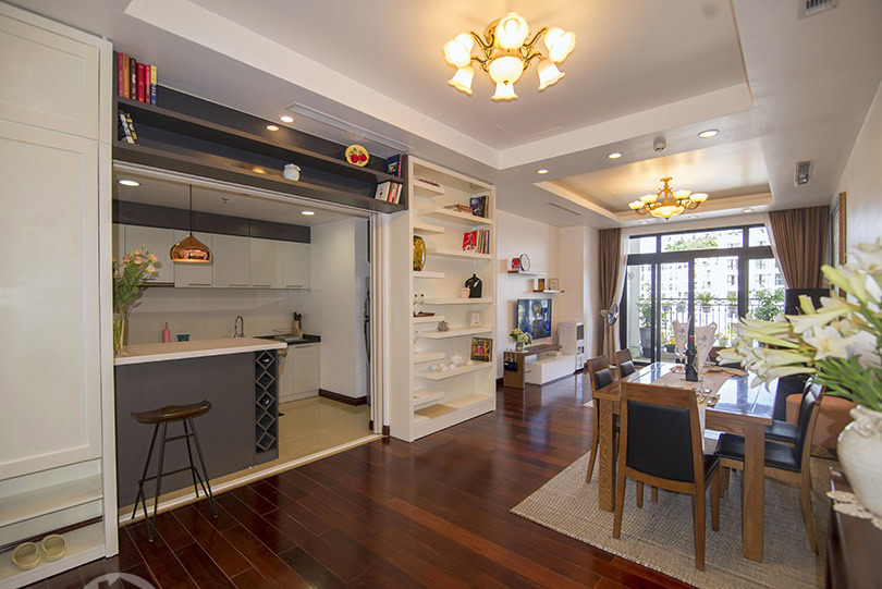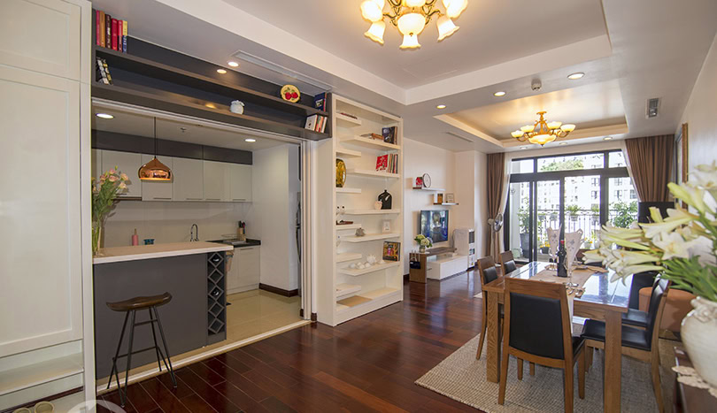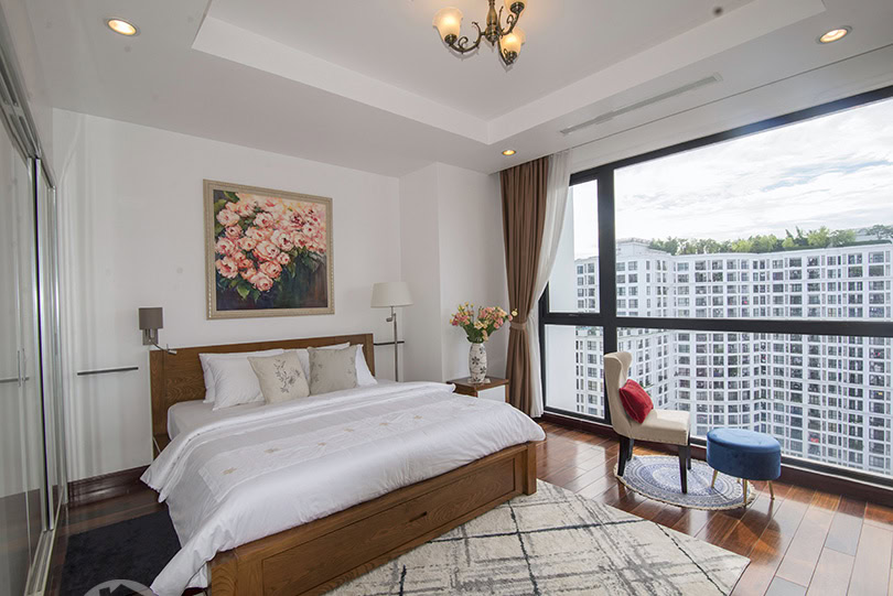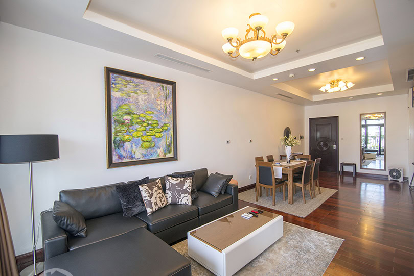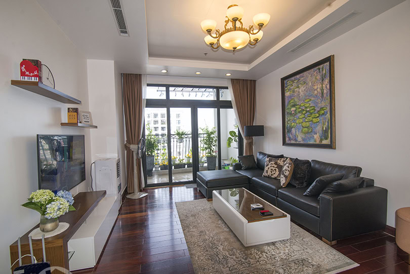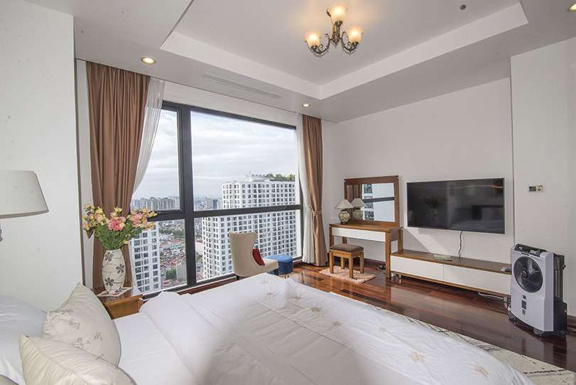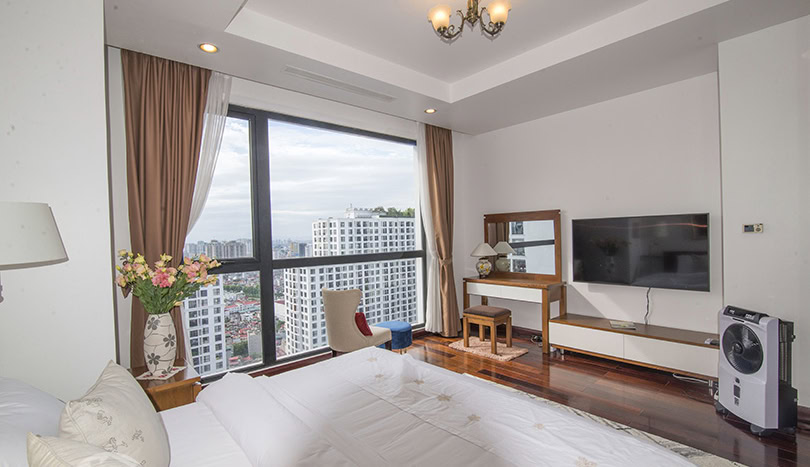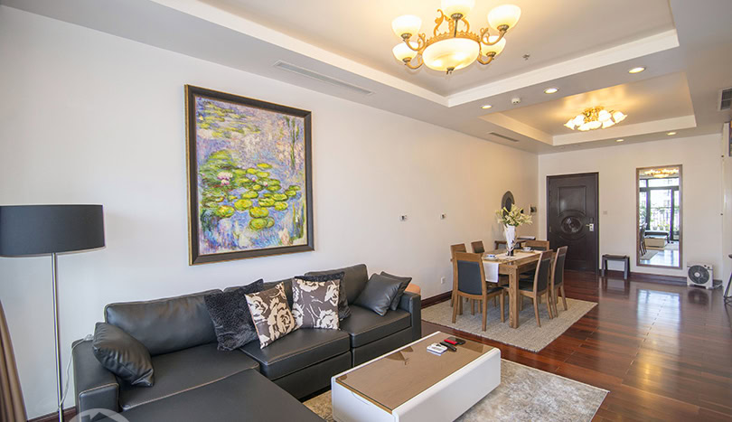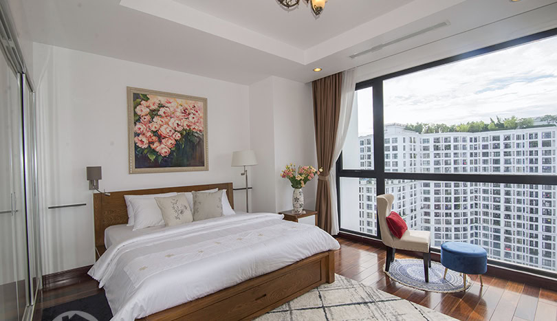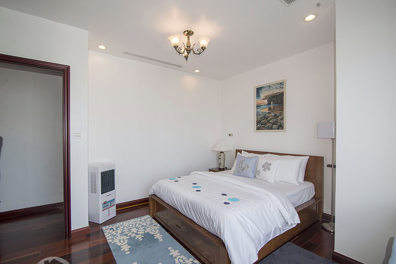This is furnished 3-bedroom apartment for rent in Royal City Hanoi. It is located on a high level thus bring a lot of light, quiet and clean. With the size 131 sqm, 03 bedrooms, 02 bathrooms, a balcony, wooden floor, very well equipped and furnished. There is swimming pool, playground in the area, it is 24 hour-security guard, high speed lifts, reception and facilities for Expats daily life.
