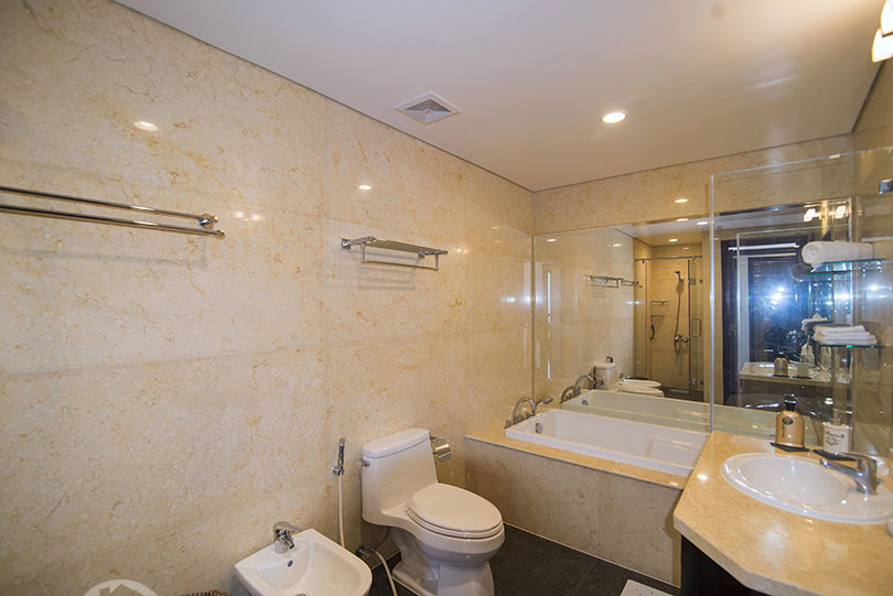 A serviced apartment 4 bedroom for rent in Hoan Kiem. The building located on Ton That Thi ...