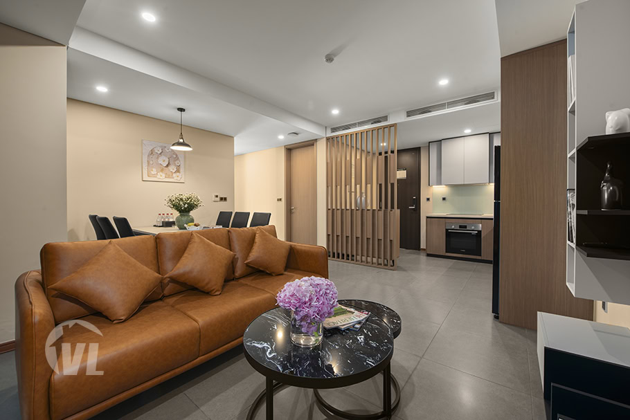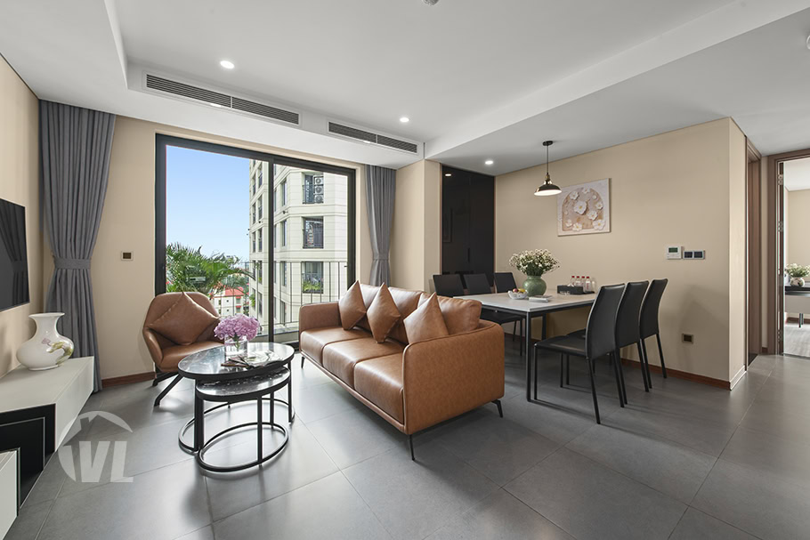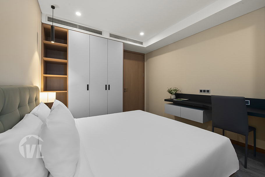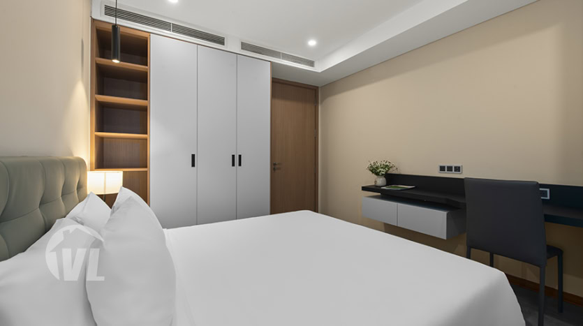 This spacious 90 sqm serviced apartment offers a contemporary living experience in one of Hanoi’s most desirable neighborhoods. Featuring two bright bedrooms and two well-appointed bathrooms, the apartment comes fully furnished with modern, high-quality interiors, providing a comfortable and ready-to-move-in home.