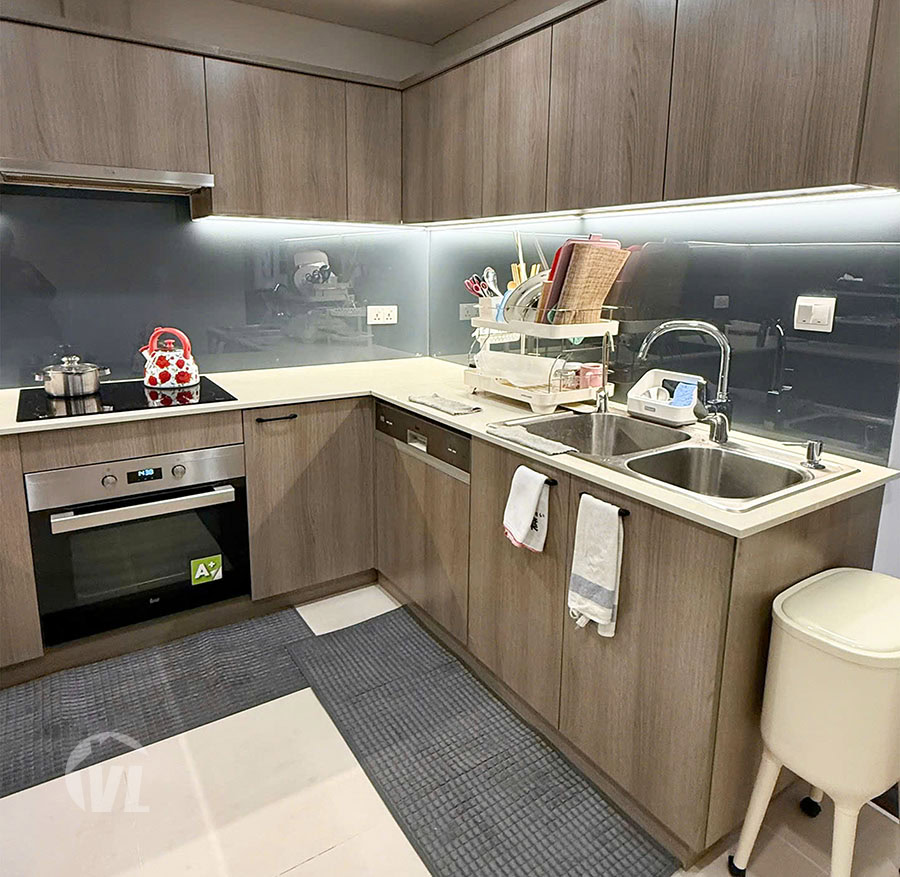 This modern 3-bedroom apartment in P2 Ciputra offers a generous living space of 145 sq m, thoughtfully designed for comfortable family living. The apartment features a bright open-plan living and dining area with elegant wooden flooring and contemporary lighting, creating a warm and welcoming atmosphere.