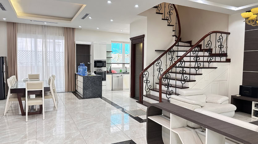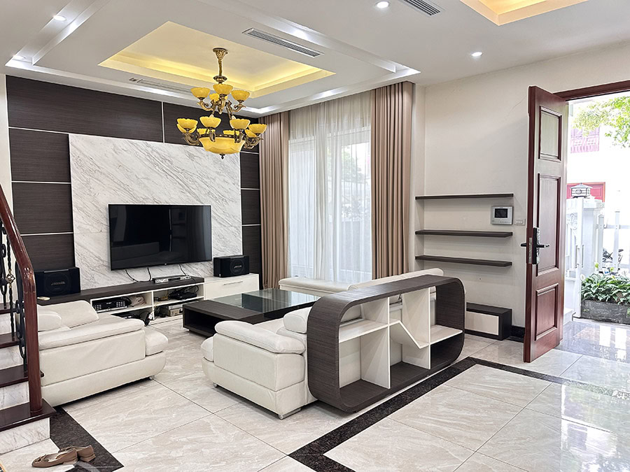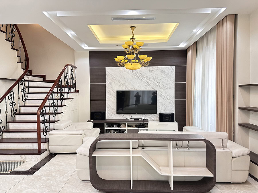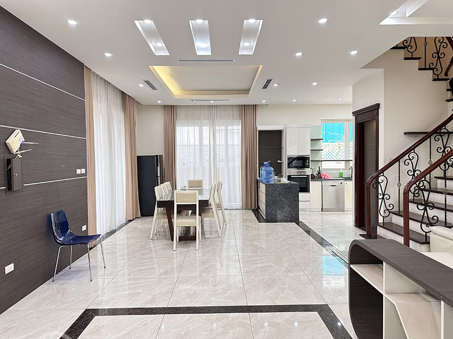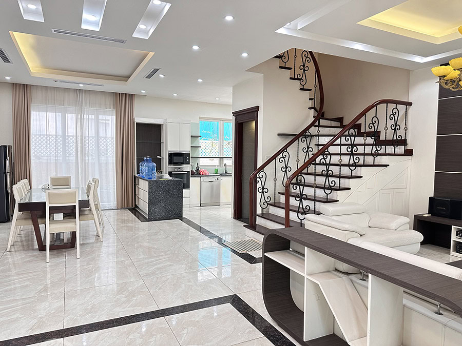 This beautifully designed villa, located in Vinhomes Riverside, offers spacious and stylish living across a 160 sqm land area, designed with 3 bedrooms plus an office and 3 bathrooms. The home is thoughtfully furnished and well-lit, blending modern comfort with elegant interiors.
