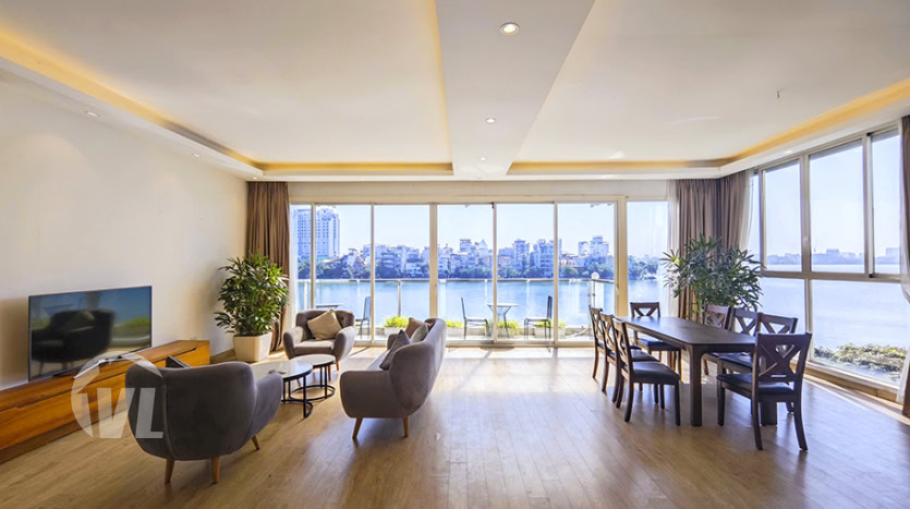 Experience modern comfort and lakeside living in this beautifully renovated 3-bedroom serviced apartment located in the heart of Tây Hồ. Overlooking the tranquil West Lake, this spacious home blends contemporary elegance with warm, natural light throughout the day—especially stunning during sunset.