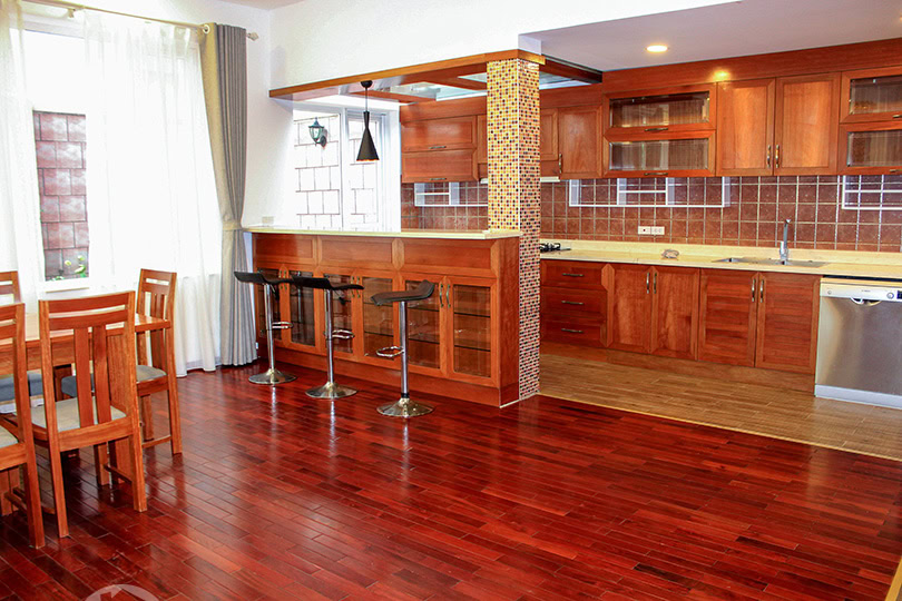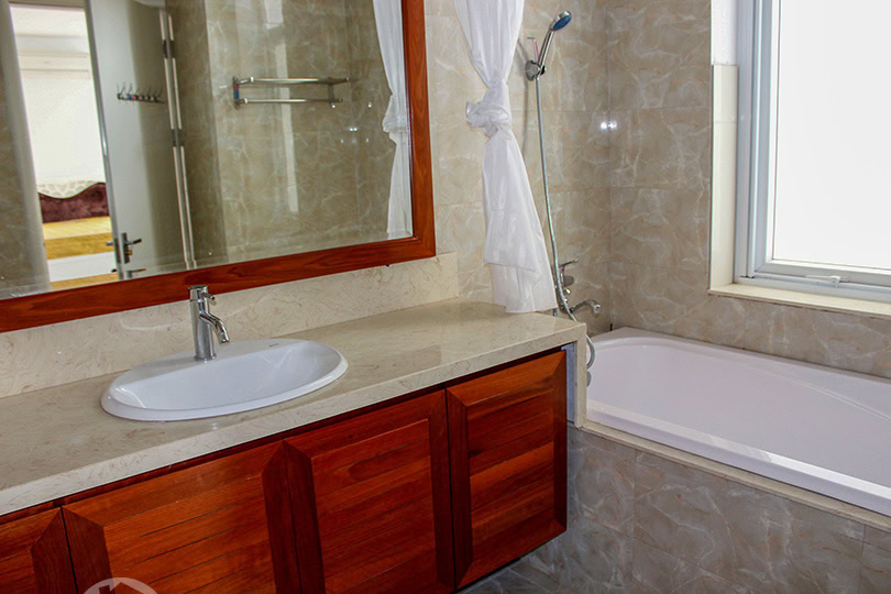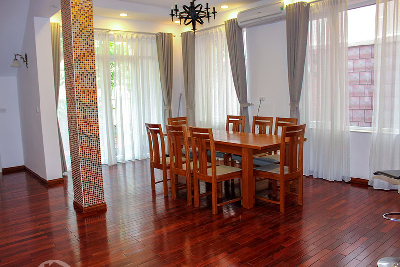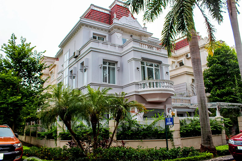 This renovated corner villa to rent is in T Block of Ciputra compound in Hanoi. On a land ...
