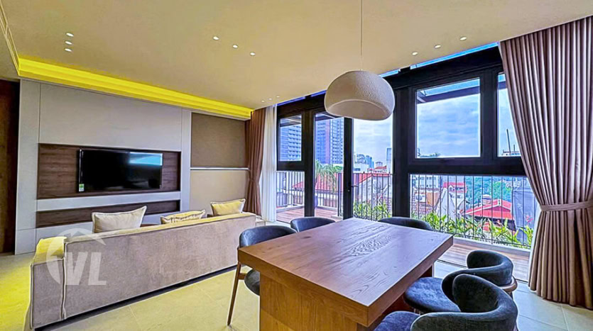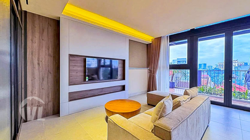 This modern, brand-new apartment offers an elegant and comfortable living space in the heart of Tây Hồ. The open-plan layout features a bright living room with large windows and a private balcony overlooking the city.