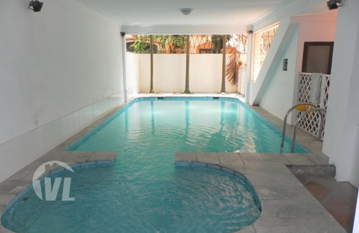 This is unfurnished 5-bedroom house with a swimming pool for rent in Tay Ho. With a courtyard, open ground floor and a good size swimming pool, the villa has a spacious lounge area, dining room and kitchen. There are 05 bedrooms, 04 bathrooms and a terrace on the top floor.